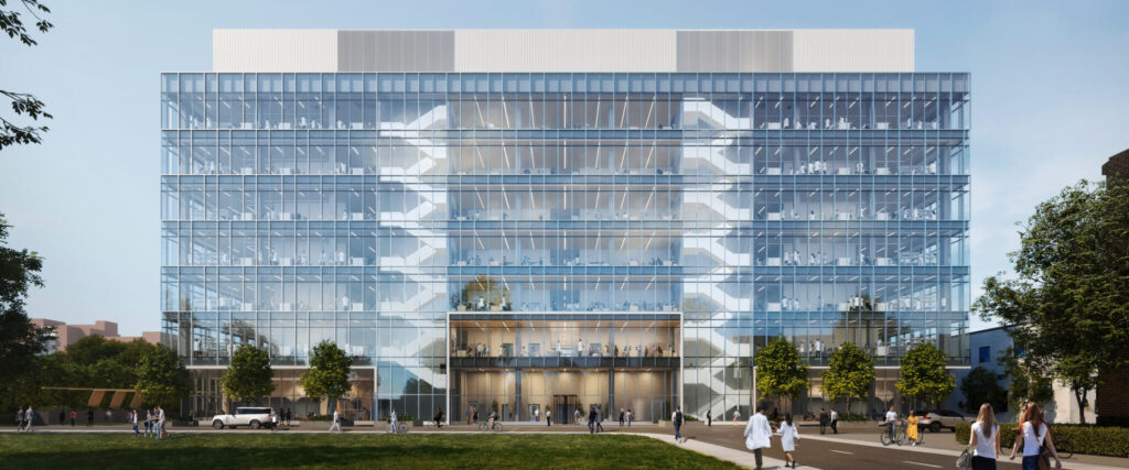 The building’s design, organized around dual service cores for efficient laboratory support utilities, is a testament to its commitment to fostering scientific excellence.