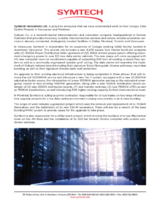 Symtech Innovations Ltd. is proud to announce that we have commenced work on two Cologix Data Centre Projects in Vancouver and Montreal.